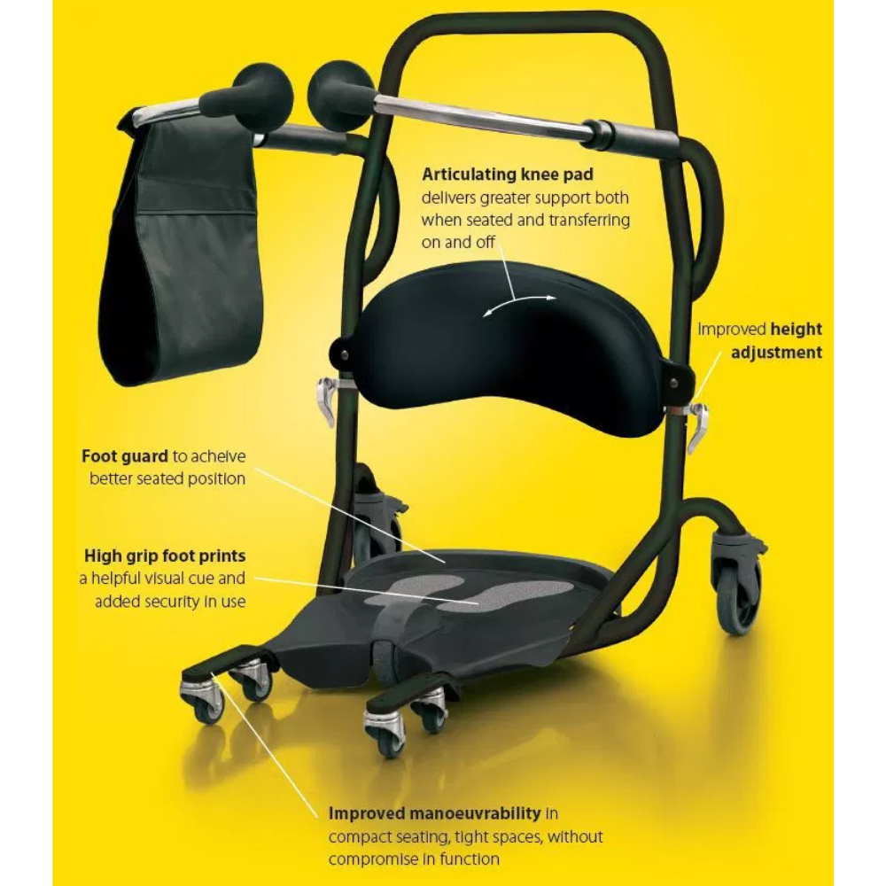 Due to its compact nature the Cricket II is suitable for use even in the tightest spaces and helps to provide a quick, easy and safe seated transfers for both carer and user whether its from a chair to toilet or bed to chair. It is ideal for users who can raise themselves to an upright or semi upright position and then sit back down for the transfer.