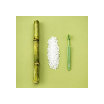 The TePe GOOD™ Regular soft toothbrush is part of the unique TePe GOOD™ range made from bio-based plastic – without compromising on product quality, efficiency or design.