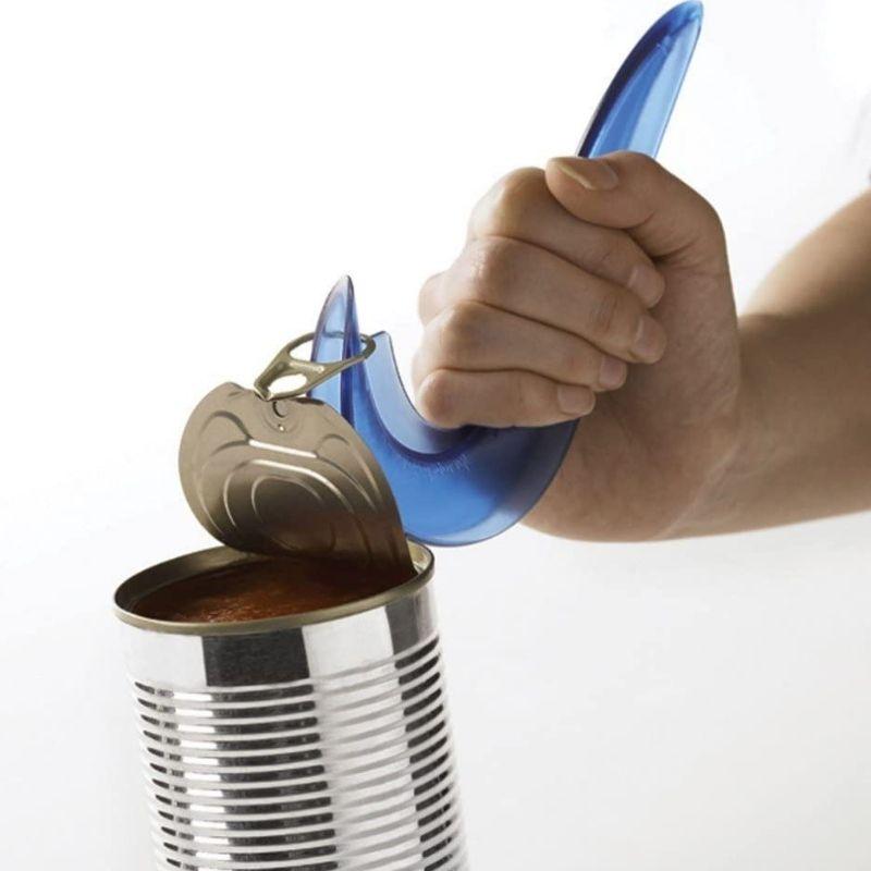 The Can Key or 'J Popper' is a practical opener for all cans with a ring-pull opening device. Place the tip of the Can Key under the ring and pull the handle. In that way the lid is removed safely and without trouble. At the same time and due to the controlled pulling you avoid that the content of the can splashes out on clothes or sore fingers from opening cans, particularly useful for those with restricted mobility.