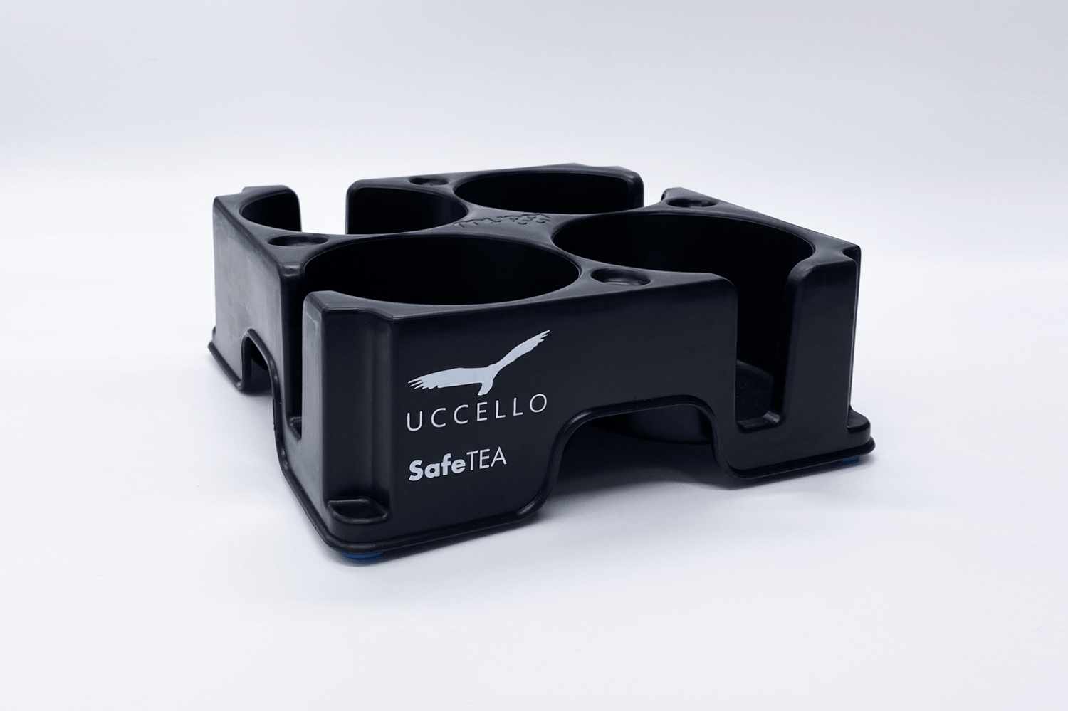 The Muggi Cup Holder is a unique and innovative way to transport up to 4 cups, glasses, bottles, etc. safely and easily if you have limited and/or reduced mobility.
