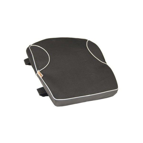 This back support cushion is made of visco-elastic memory polyurethane foam molded on a semi-rigid base that adapts to any type of chair or wheelchair, whatever the form. It allows an effective correction of the position of the back when sitting. Adjustable straps help anchor it to the seat. The zippered, washable cover made of breathable 3D fabric ensures optimal air circulation.