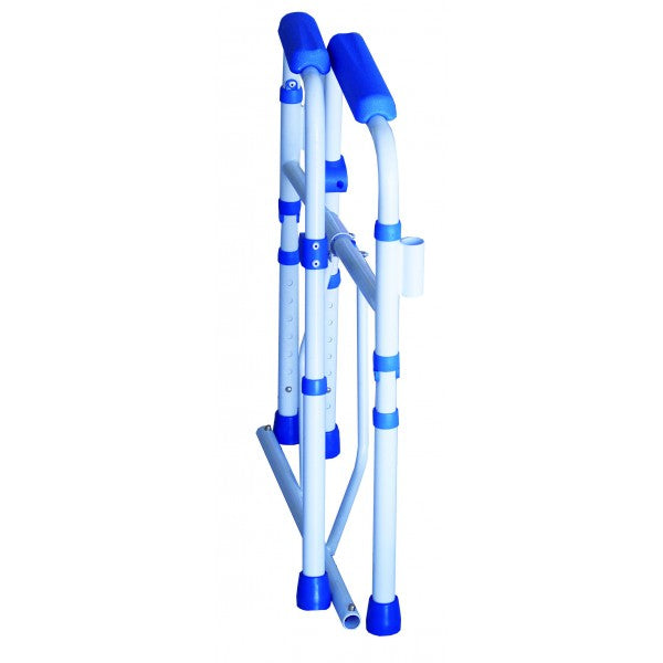 This comfortable chair can be used as a commode chair, a toilet raiser and a safety toilet frame. It is made with solid steel covered with epoxy painting.