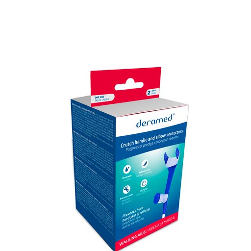 The Crutch Handle and Elbow Protectors from Deramed are a set of protectors that are used to prevent calluses and hard areas forming on the skin and the hands of people who walk using crutches. These protectors comprise of four tubes of gel, two of them to protect the palm of the hands. and the other two tubes with a central opening to protect the forearm area that rests on the crutch.