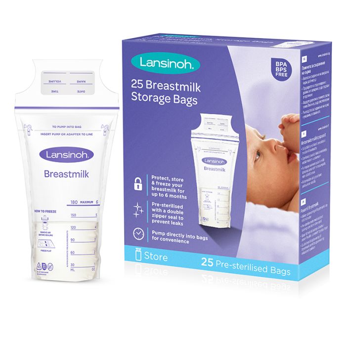 Lansinoh's new and improved Breastmilk Storage Bags are perfect for mums to store breastmilk in the fridge or freezer, lying flat or standing up. You can now pump directly into these Breastmilk Storage Bags from any Lansinoh breast pump, just ensure that your Lansinoh Breastmilk Storage Bag has white and purple flowers and a white line above the logo. If your bag does not have this design, it is not compatible with pumping directly into the bag.